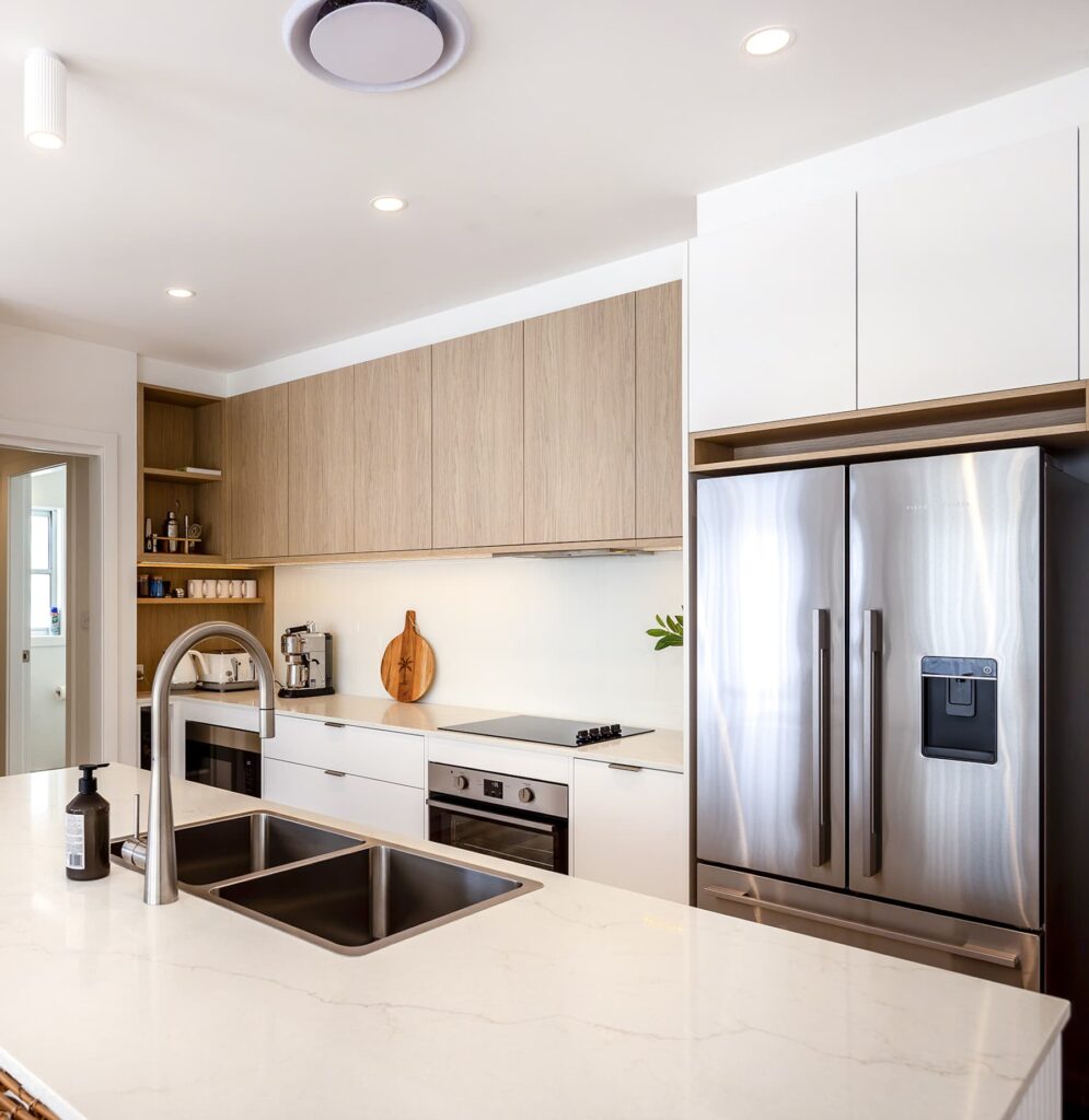 With its seamless indoor-outdoor flow, Villa 1 offers relaxed coastal living at its best. The open-plan kitchen, dining, and living area opens directly to a private courtyard with a plunge pool and outdoor seating – ideal for post-beach afternoons.
