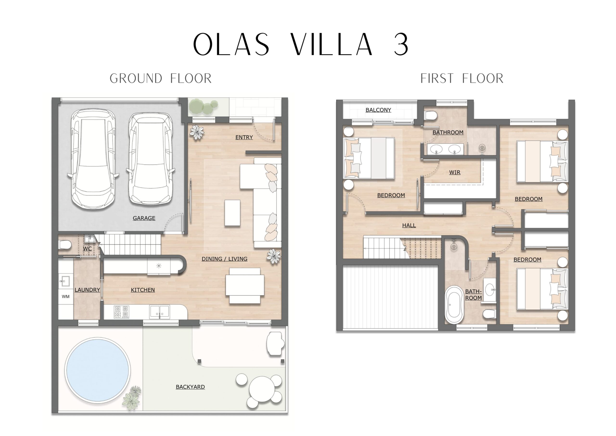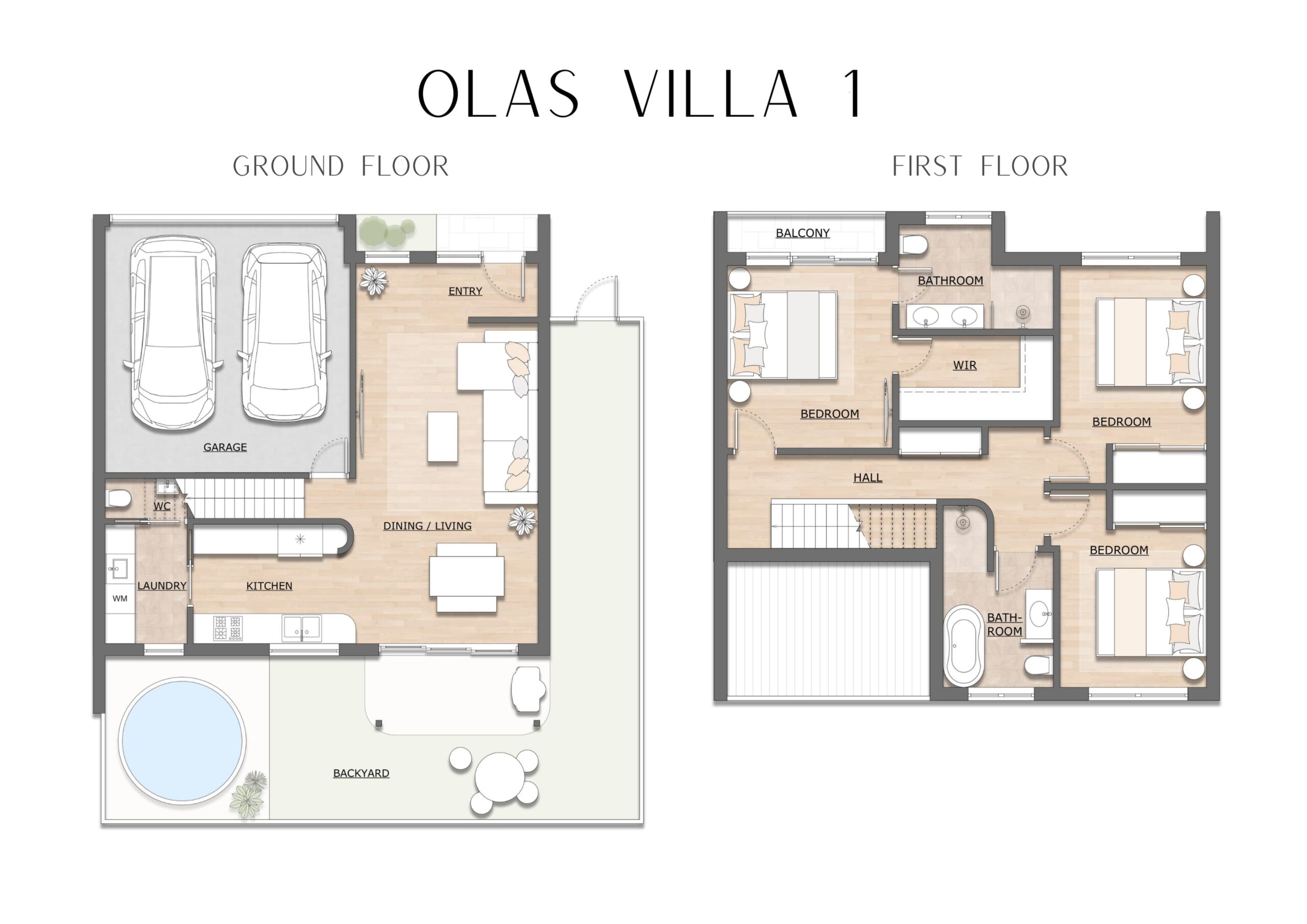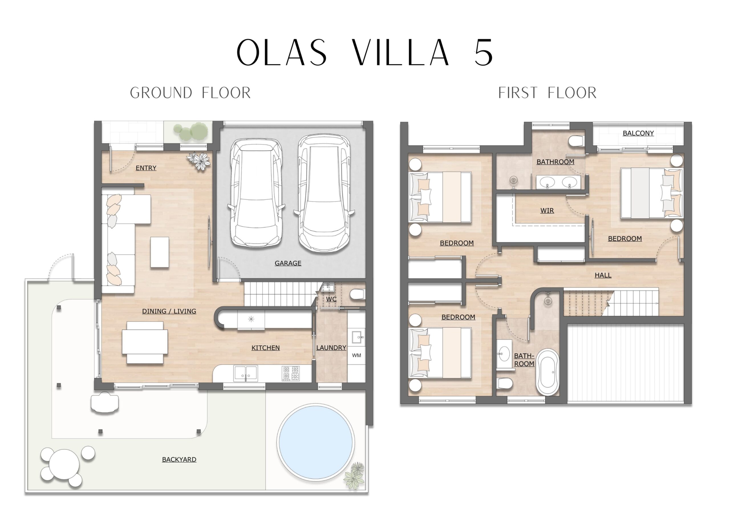 Each villa features a private plunge pool, modern kitchen, walk-in wardrobes, laundry, and generous living areas – all within walking distance to the beach, skate park, camel rides, sand dunes, and local shops.